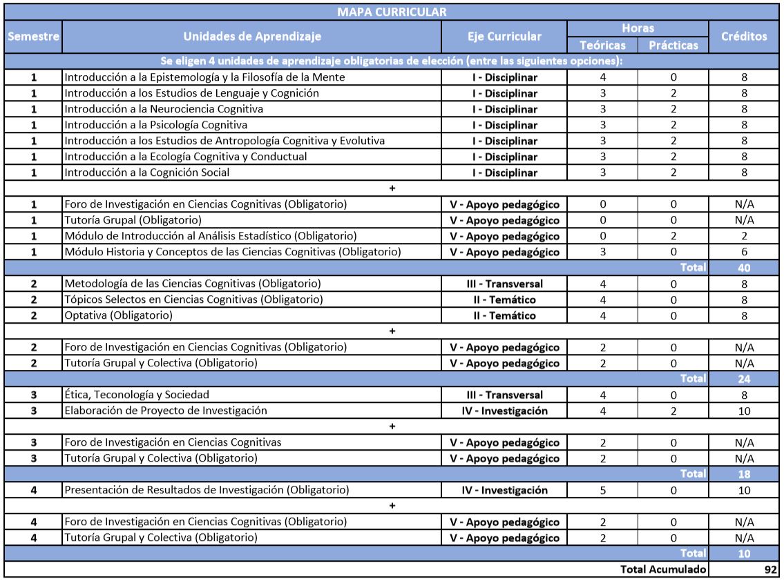 The following table shows the extensive Curricular Map: